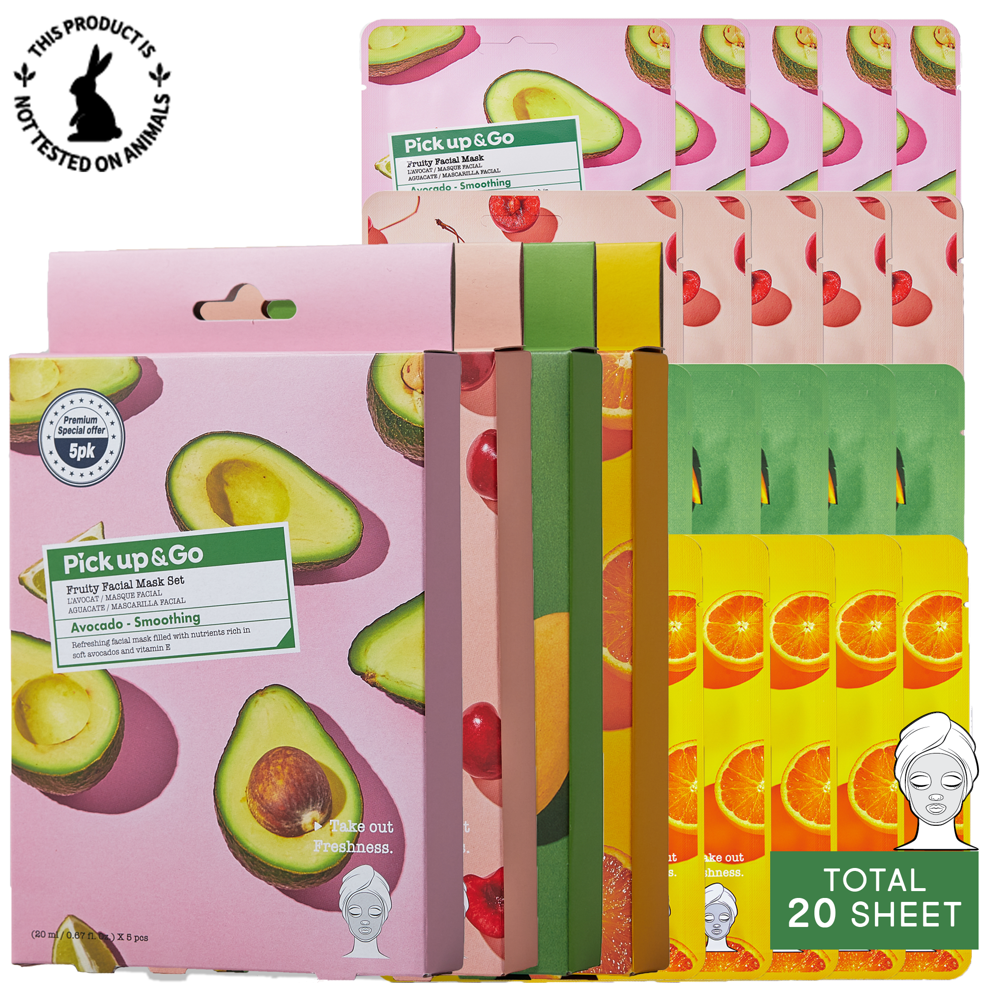 Pick Up Go Fruity Facial Mask Korean Face Sheet Masks Assorted 20pk Walmart Com